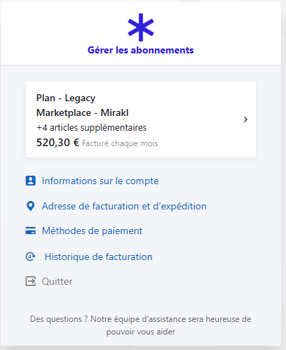 En cliquant sur Gérer mon abonnement, vous accédez à votre interface de facturation personnelle :