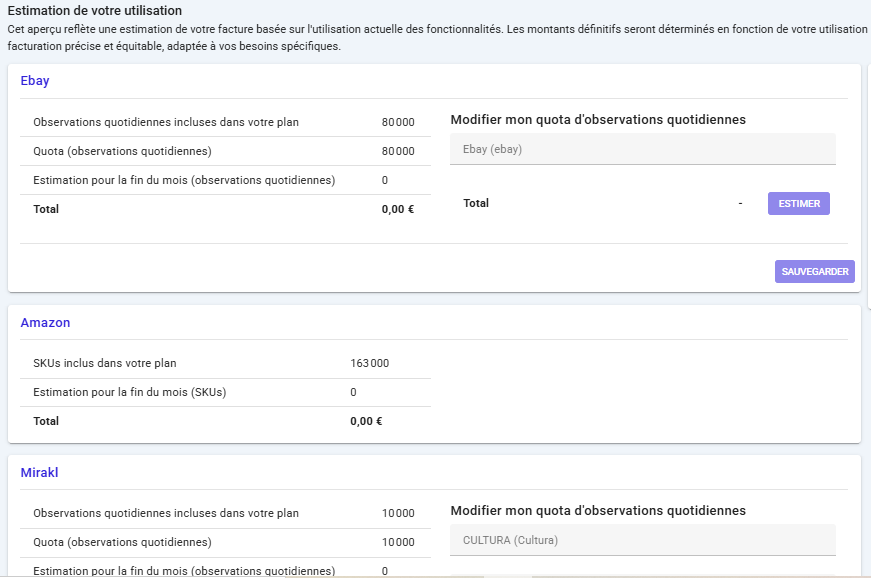 Suivre votre quota de rafraîchissements ou de SKU, selon la marketplace.